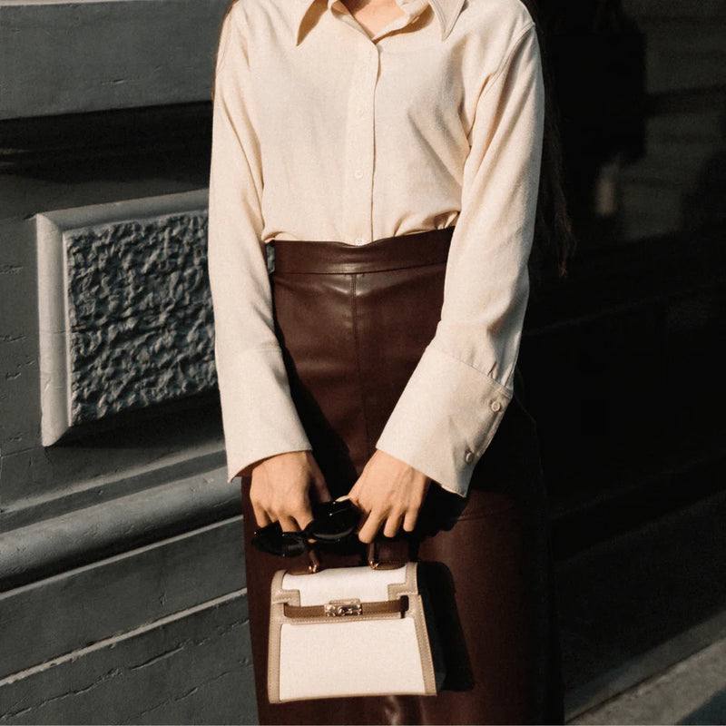 Una borsa in pelle vegana multicolore pensata per chi ama lo shopping consapevole. Con il corpo e la fodera a contrasto, Annabelle emana un fascino classico e sofisticato. Grazie all'elegante manico e ai dettagli delle cuciture, Annabelle è l'accessorio di moda ideale per ogni guardaroba.