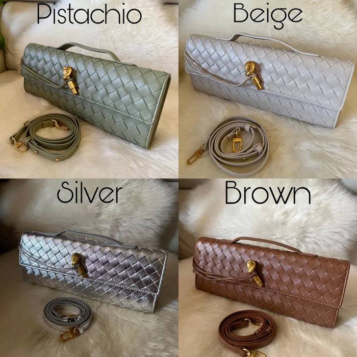 La pochette London intrecciata combina stile e praticità con un design intrecciato e una chiusura a nodo color oro per riporre senza sforzo i vostri oggetti essenziali.